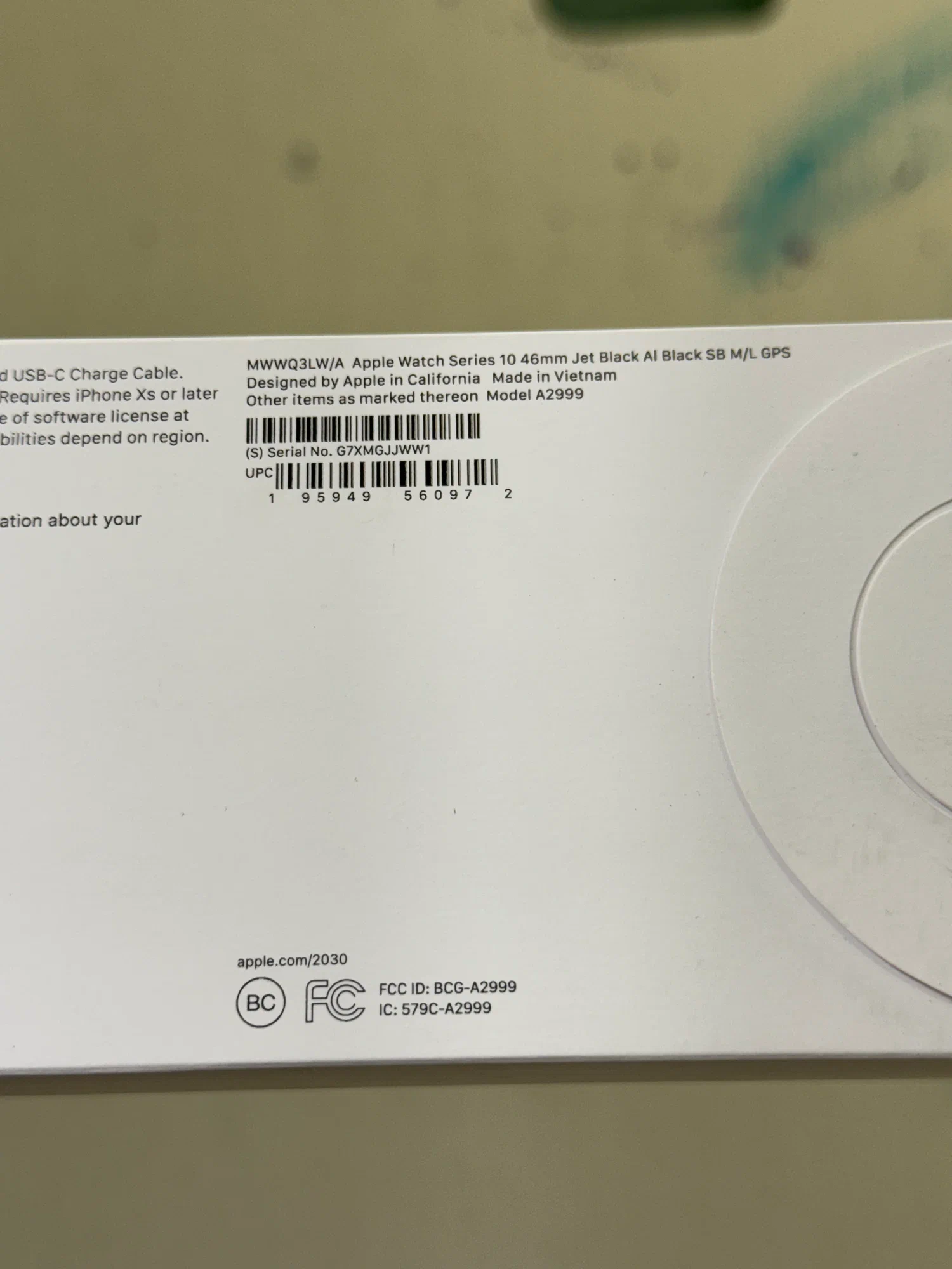 Часы Apple Watch Series 10, 46 мм, корпус из алюминия цвета «чёрный оникс», спортивный ремешок чёрного цвета, размер M/L (MWWQ3)