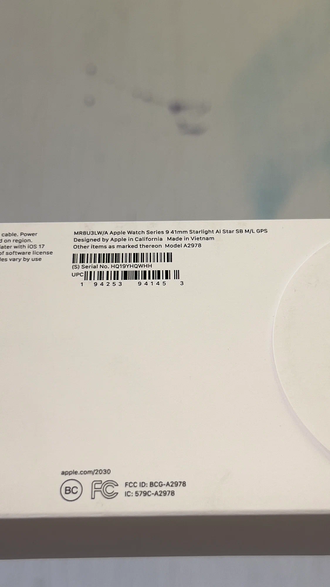 Часы Apple Watch Series 9, 41 мм, корпус из алюминия цвета «сияющая звезда», спортивный ремешок цвета «сияющая звезда», размер M/L (MR8U3)