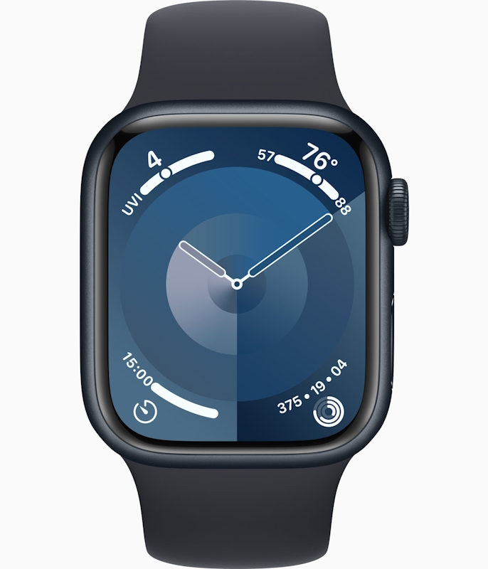 Часы Apple Watch Series 9, 41 мм, корпус из алюминия цвета «тёмная ночь», спортивный ремешок цвета «тёмная ночь», размер S/M (MR8W3)