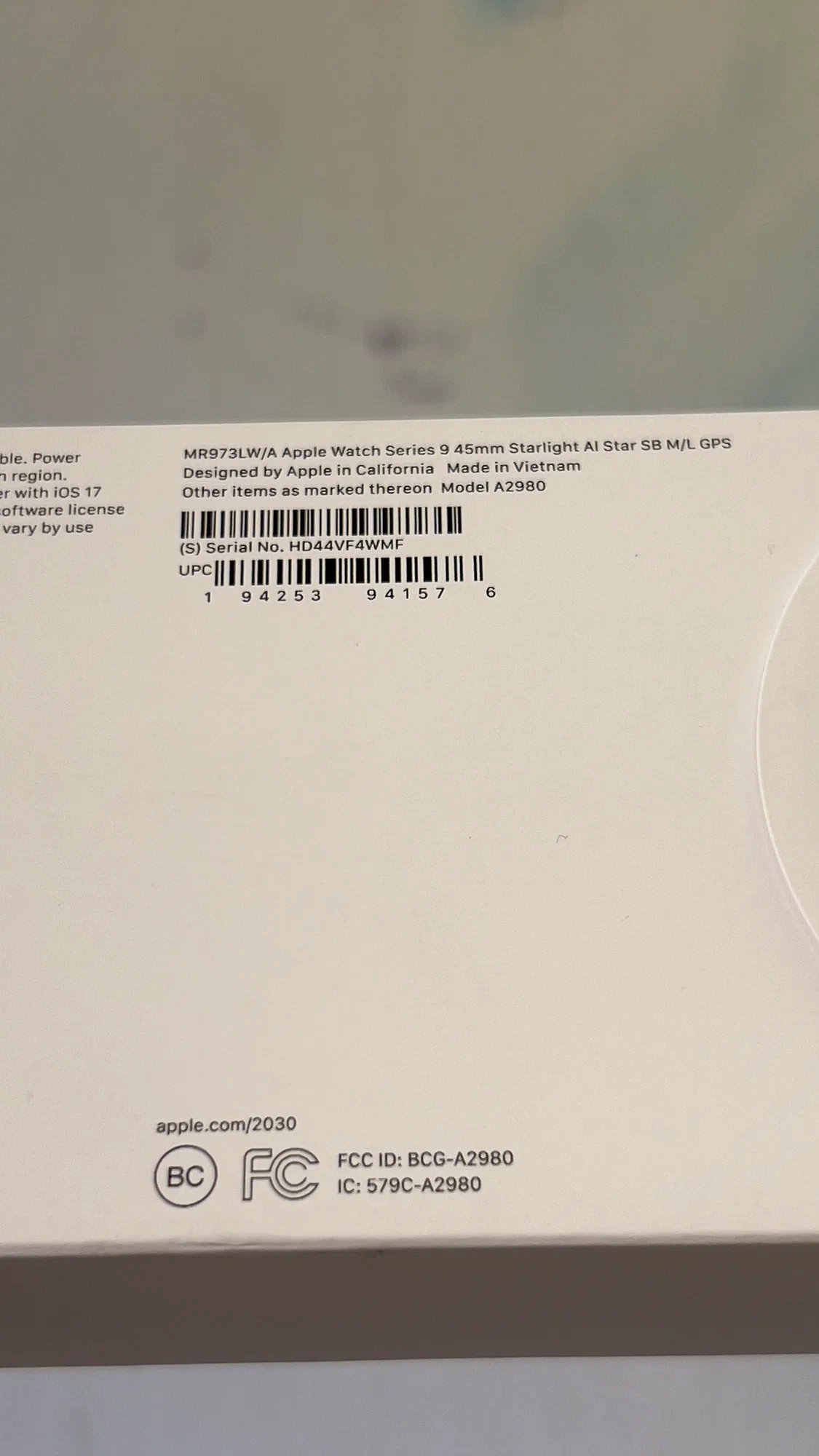 Часы Apple Watch Series 9, 45 мм, корпус из алюминия цвета «сияющая звезда», спортивный ремешок цвета «сияющая звезда», размер M/L (MR973)