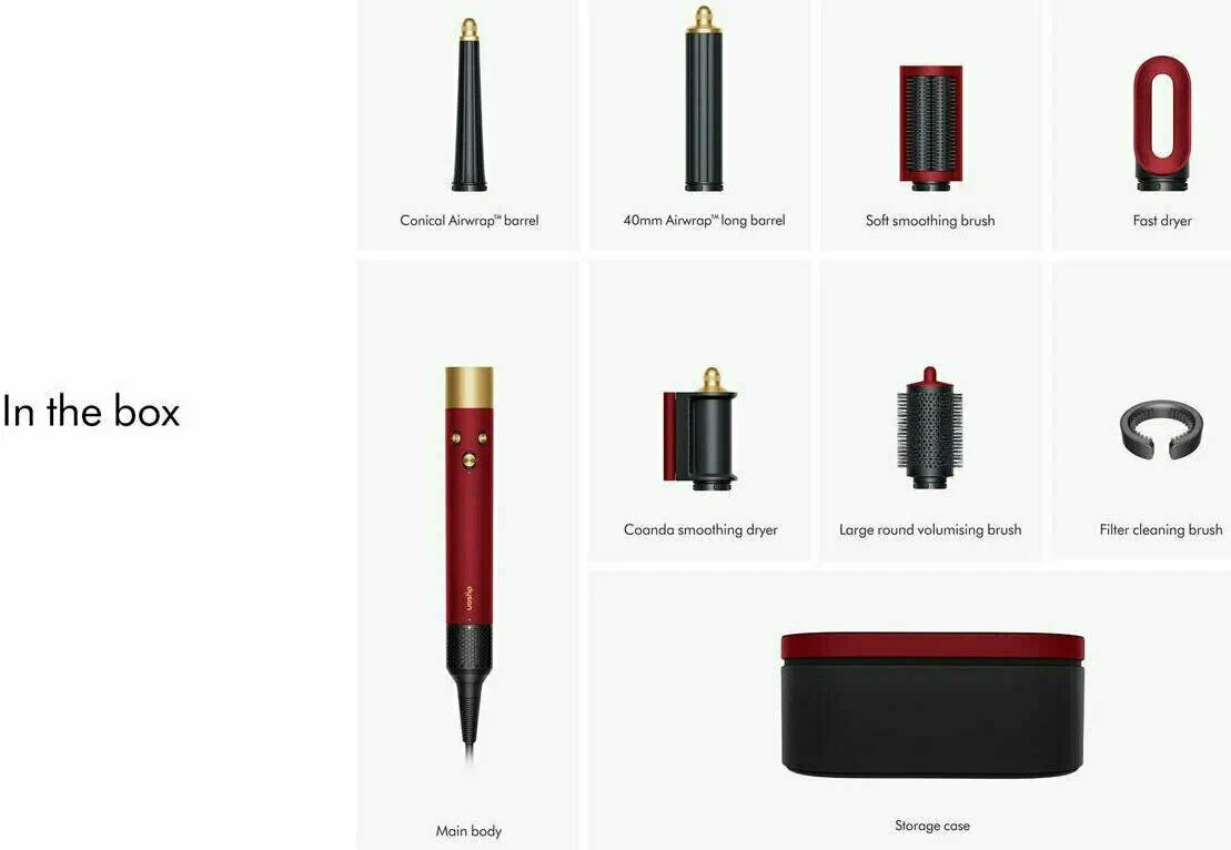 Главная → Каталог товаров → Dyson → Стайлер Dyson Airwrap Complete Long HS08, красный вельвет/золотой (594804-01) HK